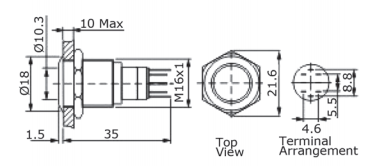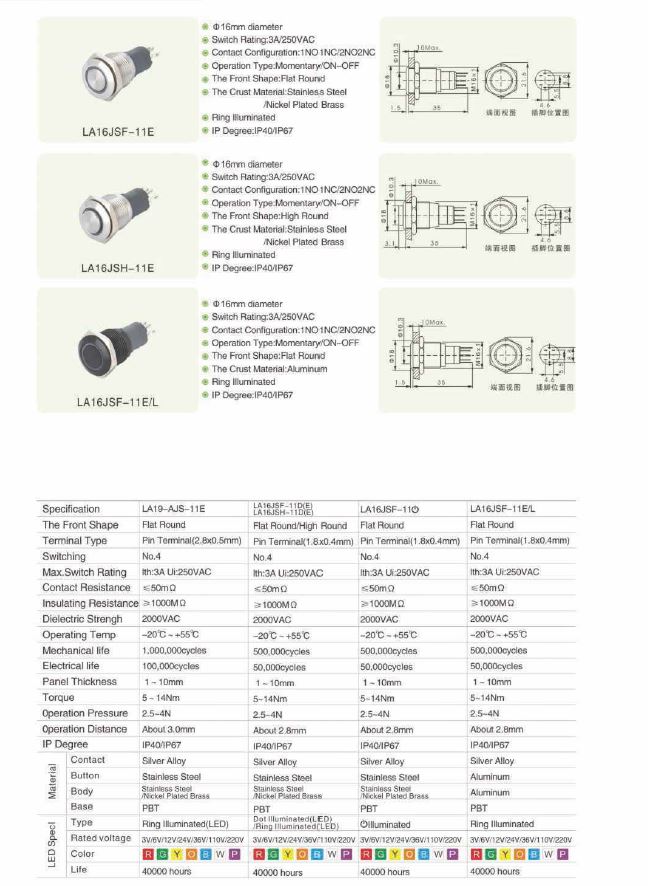 Wypukły Nie dotyczy Wandaloodporny 1NO1NC 12mm Nie dotyczy Do lutowania IP65 Nie dotyczy 3A/250VAC Nie dotyczy Nie dotyczy Monostabilne Nie dotyczy
