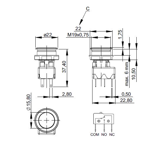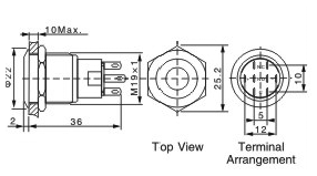 Wypukły Nie dotyczy Wandaloodporny 1NO1NC 12mm Nie dotyczy Do lutowania IP65 Nie dotyczy 1A 250VAC Nie dotyczy Nie dotyczy Bistabilne Nie dotyczy