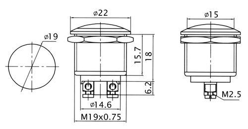 Przełącznik wandaloodporny; W12H21/C 12mm; bistabilny; 1NO1NC; miedziany; do lutowania; z wypukłym przyciskiem; 1A; 250VAC; IP65; IK08; żywotność: 50.000 cykli; temperatura pracy: -20~55°C