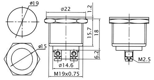 Złącze do przycisków; W19Z/150mm Rys.W19Z/150mm