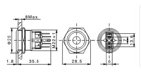 Wypukły Nie dotyczy Wandaloodporny 1NO 8mm Nie dotyczy Do lutowania IP65 Nie dotyczy 3A/250VAC Nie dotyczy Nie dotyczy Monostabilne Nie dotyczy