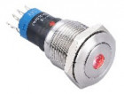 12mm; bistabilny; 1NO1NC; miedź; do lutowania; z płaskim przyciskiem; podświetlenie LED 12V; krawędziowe; czerwone; 3A; 250VAC; IP65; IK08; żywotność: 50.000 cykli