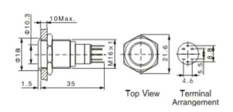 Wypukły | Nie dotyczy | Wandaloodporny | 1NO | 12mm | Nie dotyczy | Do lutowania | IP67 | Nie dotyczy | 2A/36VDC | Nie dotyczy | Nie dotyczy | Monostabilne | Nie dotyczy | ||||||||||||
