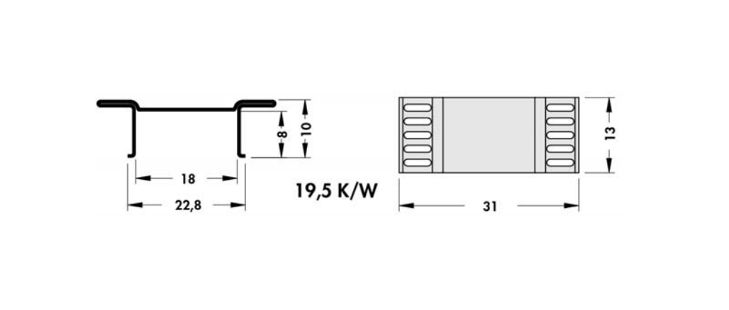 THF4092202 sprężynka dociskowa ; TO220; TO247; TO248; TO3P; TO 218; wymiary: 18x15,5,3x3mm; pasujący radiator: SK 437; SK 185; SK 145; grubość: 4mm; materiał: stal nierdzewna: Odpowiednik THF409/220/1;