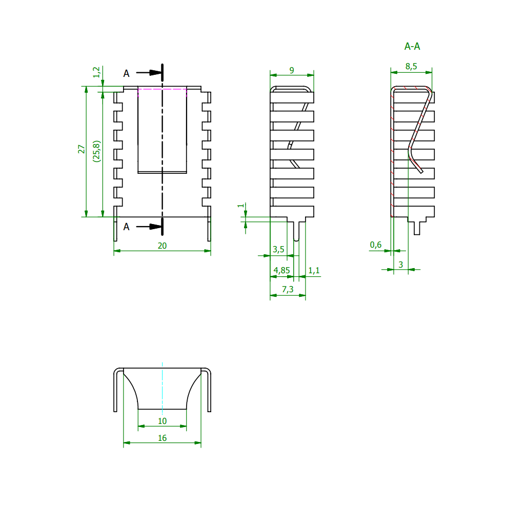 FK 224 SA 220 2 Fischer Radiator Radiator; FK 224; długość=25mm; szerokość=8,3mm; wysokość=25,4mm; TO 220; 18K/W; anodowany