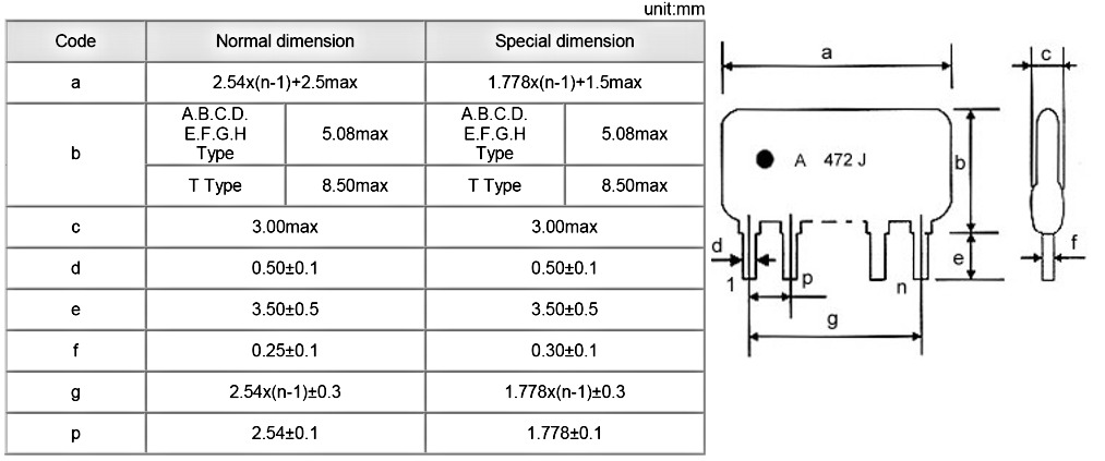 Drabinka rezystorowa; SIL; 5 pinów; 4 rezystory; 10kR; 2%; 0.125W; 200ppm/°C; temperatura pracy: -55°C~155°C; max. napięcie pracy: 200V;