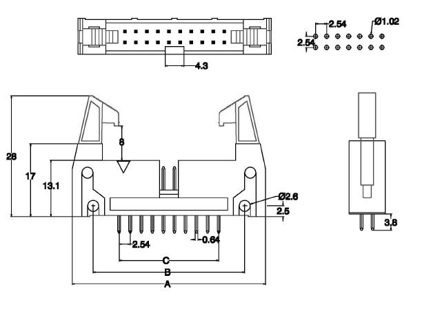 Na taśmę AWG28 | Męskie | Styki pozłacane | 2,54mm | 26 | ||||||||||||