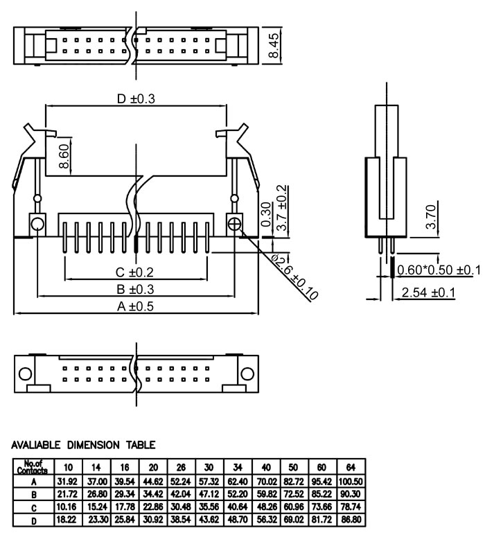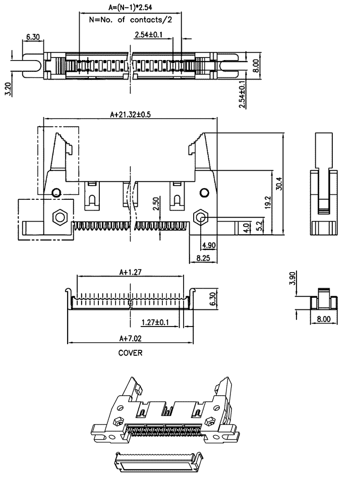 CONNECTAR Symbol Producenta: CH254-EBH-170-50-S-GO-A RoHS Obudowa dokładna: Rys.MDZ50S |