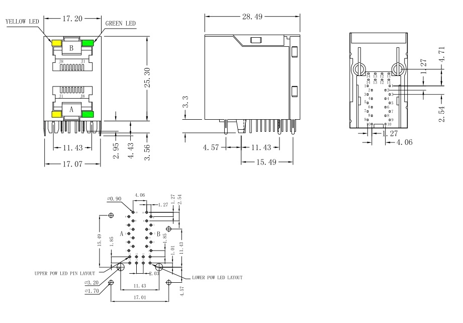 Link-PP | Z Led i USB | 1x2 | 10/100 Base-T | THT | Pozioma | 8p8c | Ethernet(NoN PoE) | ||||||||||||